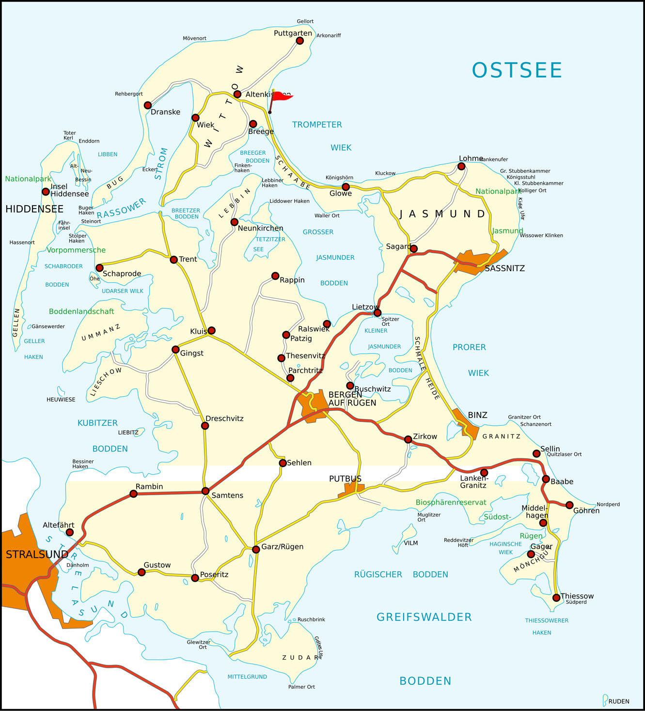 Reisen Sie mit dem Auto ist die nächste Autobahnausfahrt Stralsund in ca. 60 km. Von dort aus fahren Sie über die längste Brücke Deutschlands auf die Insel.